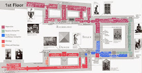 Well, time to begin this long journey. Do not be foolish yourself. Louvre is really big, as all royal French monuments, churches, castles and palaces. Depending on your interest and time expent enjoying each work it's easy to be there several days to visit all rooms. Le Louvre could deserve a special journey to Paris to know it well. As all in this life you could eat an elephant but cutting it in pieces and going little by little. But just in a day? Impossible, even being a lions pride. Louvre has eight sections or departments: Egyptian Antiquities; Near Eastern Antiquities; Greek, Etruscan, and Roman Antiquities; Islamic Art; Sculpture; Decorative Arts; Paintings; Prints and Drawings.